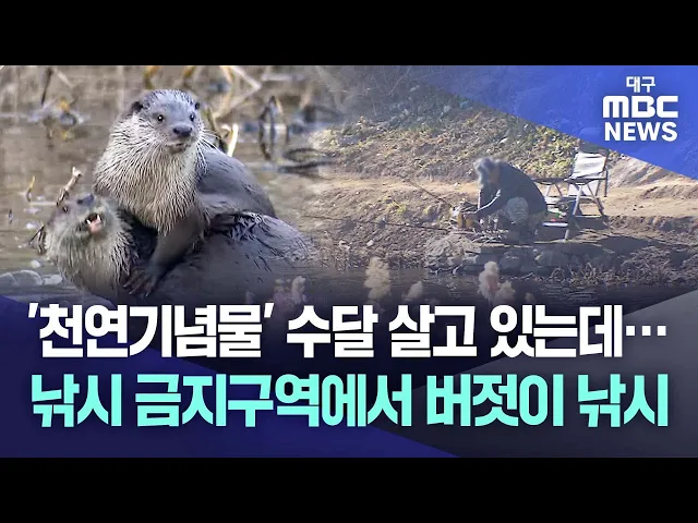 ◀앵커▶대구에서 물고기 잘 잡히는 곳이라 소문이 나 추운 날에도 낚시꾼들이 모이는 곳, 금호강입니다. 그런데 이 일대는 천연기념물 수달이 서식하는 곳으로 낚시 금지구역으로 지정돼 있습니다.매일같이 불법 낚시가 벌어지고 있지만 단속은 거의 이뤄지지 않아 수달은 생존을 위협받고 있습니다.현장 취재, 변예주 기자...
