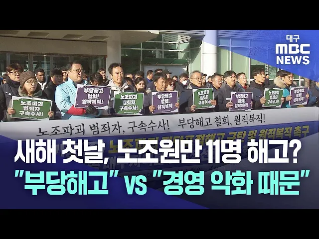 ◀앵커▶희망과 기대로 가득차야 할 새해 첫날부터 일자리를 잃은 노동자들이 있습니다.대구의 한 농기계부품제조사에서 직원 11명을 해고했는데, 모두 노동조합에 가입한 직원들입니다. 노조원들은 노조 가입을 문제 삼은 부당해고라고 주장하고 있습니다.회사는 경영 악화 때문이라고 맞서고 있습니다.변예주 기자의 보도입...