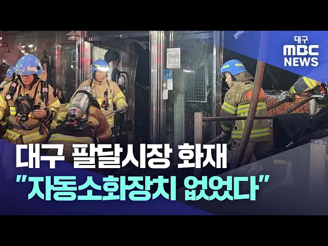 ◀ 앵 커 ▶12월 27일 오후, 대구 북구 팔달시장에서 불이 났습니다.다행히 다친 사람은 없었지만, 점포 6곳이 모두 탔습니다.스프링클러와 같은 자동소화장치는 없었습니다.변예주 기자입니다.◀ 기자 ▶지하철 인근, 건물 사이에서 시커먼 연기 기둥이 하늘로 솟구칩니다.시뻘건 화염도 보입니다.어제(27일) 오후 4시 50분쯤 ...