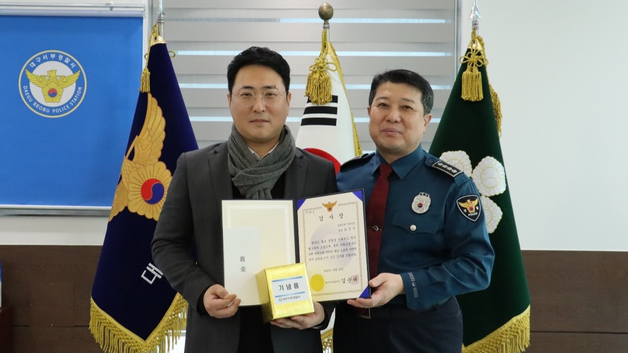 사진 제공 대구서부경찰서대구 서부경찰서는 보이스피싱 피해를 막은 농협은행 두류지점 직원 유진우 씨에게 감사패를 전달했습니다.유 씨는 12월 1일 50대 여성이 현금 4,300만 원을 송금하려고 하자 보이스피싱임을 의심해 경찰에 신고해 피해를 막았습니다.경찰은 서민금융 저금리 대출 알선을 미끼로 한 보이스피싱이었...