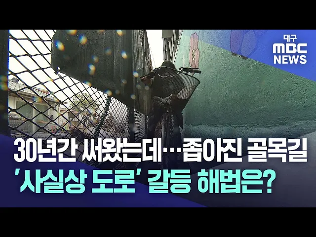 ◀앵커▶30년간 다니던 집 앞 골목길이 갑자기 사람 한 명이 다니는 것도 버거울 정도로 좁아진다면 어떨까요?사유지이지만 오랫동안 도로로 이용해온 땅을 '사실상 도로'라고 하는데, 땅 주인이 울타리를 치거나 건물을 지으면서 통행이 어려운 맹지가 돼버리는 경우가 종종 발생합니다.재산권과 도로 통행 기본권이 맞서면...