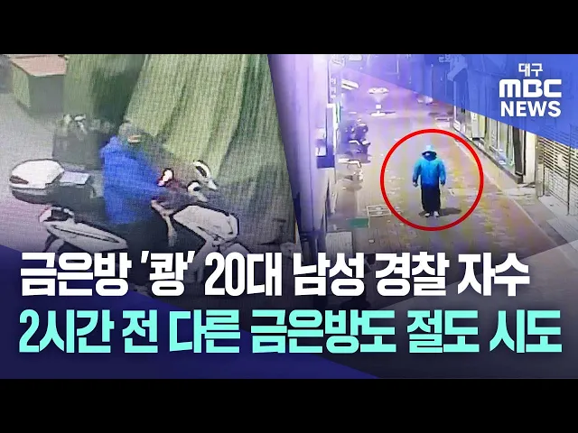◀앵커▶ 12월 20일 새벽 대구에서 발생한, 복면 쓴 금은방 절도 용의자가 경찰에 자수했습니다.그런데 사건은 이 뿐만이 아니었습니다. 범행 2시간 전에는 6km 가량 떨어진 또 다른 금은방에서 귀금속을 훔치려다 실패한 것으로 드러났습니다.변예주 기자입니다.◀기자▶새벽 시간, 복면을 한 남성이 오토바이를 타고 나타납니...