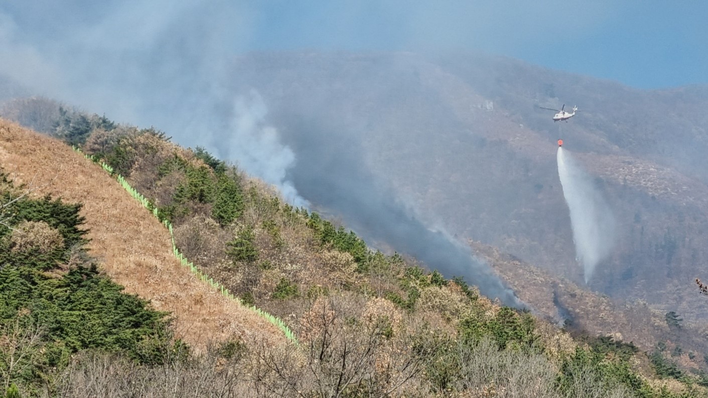 사진 제공 산림청11월 30일 밤 10시 10분쯤 경북 성주군 수륜면 야산에서 불이 나 4시간 만에 꺼졌습니다.산림 당국은 장비 33대와 인력 188명을 투입해 12월 1일 새벽 2시 10분쯤 불을 껐습니다.인명피해는 없었지만 산 1.5헥타르와 인근에 있던 주택 일부가 불에 탔습니다.산림 당국은 산 아래 주택에서 불이 시작돼 산으...