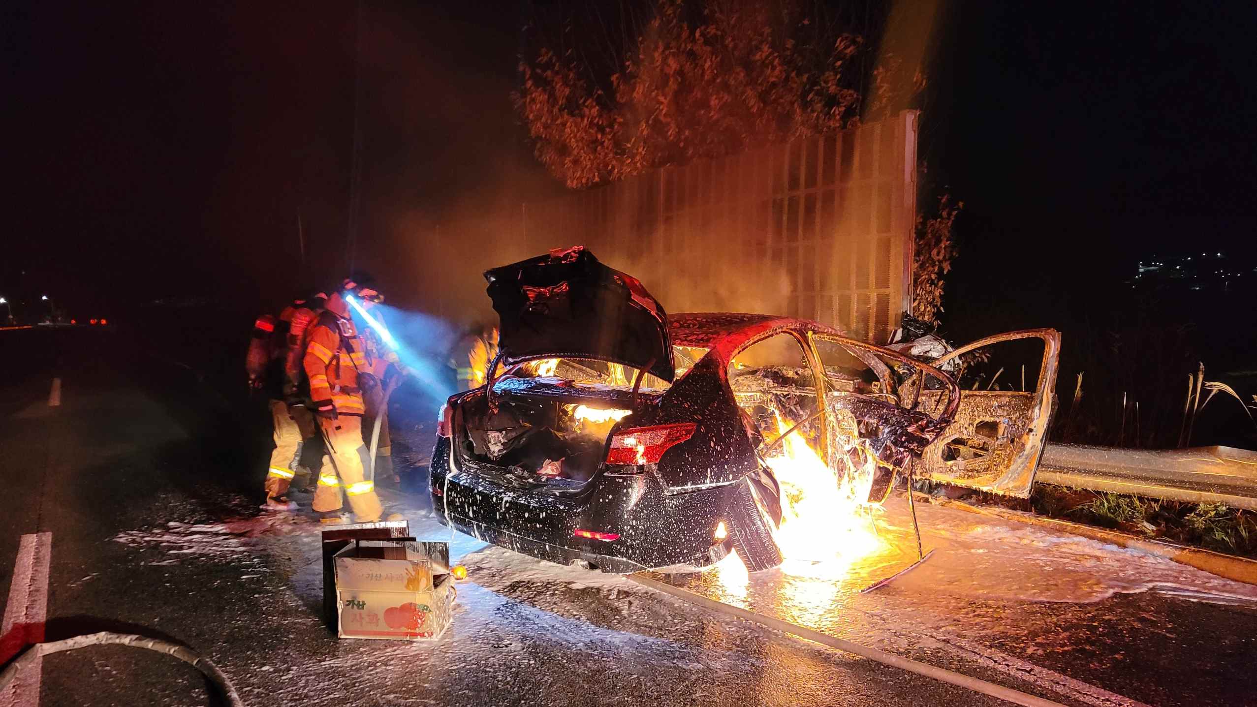경북 구미서 승용차 가드레일 충돌 후 불···60대 운전자 숨져