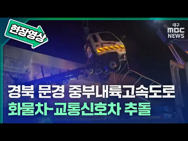 11월 28일 저녁 8시 40분쯤 경상북도 문경시 마성면 중부내륙고속도로 창원 방향 문경새재 나들목 인근에서 12.5톤 화물차가 도로 공사를 위해 멈춰있던 교통신호차를 들이받았습니다.다친 사람은 없었지만 신호차가 도로 옆 갓길 밖으로 떨어져 파손됐습니다.경찰은 화물차 운전자가 음주 상태는 아니었던 것으로 확인하고...