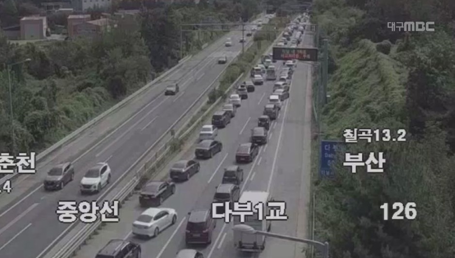 추석 다음 날인 9월 30일 낮 고속도로 곳곳에서 귀경길 정체가 이어지고 있습니다.경부고속도로 서울 방향은 금호분기점에서 칠곡분기점 3km, 부산 방향은 북대구 부근에서 도동분기점 7㎞ 구간 정체가 이어지고 있습니다.중앙고속도로 춘천 방향은 칠곡에서 다부터널 일대에 차량이 서행하고 있습니다.한국도로공사에 따르...