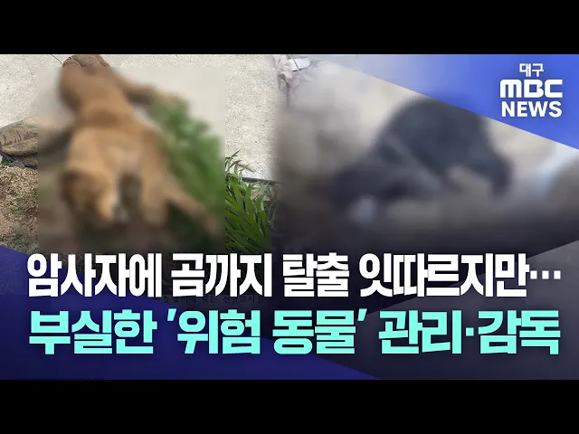 ◀앵커▶8월 14일 고령의 사설 목장에서 암사자가 탈출했다가 사살된 아찔한 사건이 있었습니다.2022년 12월에는 울산에서도 반달가슴곰이 탈출해 사살당하는 등 대형 야생 동물이 관리·감독 부실로 사실상 방치돼 있다는 지적이 나옵니다.사육을 포기하더라도 이 동물들은 받아줄 적당한 시설도 없는 상황입니다.관리의 사각...