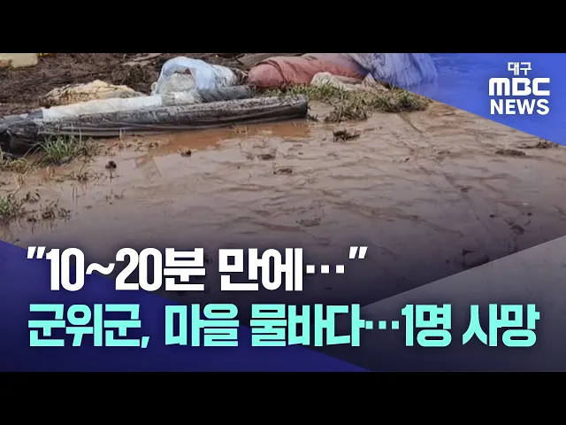 ◀앵커▶태풍 '카눈'이 할퀴고 간 자리에는 큰 상처가 남았습니다.대구 군위에서는 제방이 무너져 마을이 물에 잠기면서 주민 1명이 숨지고 170여 명의 이재민이 발생했습니다. 순식간에 삶의 터전을 잃은 주민들은 망연자실해 하고 있습니다.변예주 기자의 보도입니다. ◀기자▶흙탕물이 마을을 순식간에...