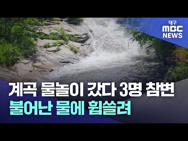 ◀앵커▶방학을 맞아 계곡으로 물놀이 갔던 대학생 3명이 물에 빠져 숨지는 사건이 발생했습니다.최근 많은 비로 계곡 물이 평소보다 불어나 소용돌이에 휩쓸린 걸로 추정됩니다.이곳은 지자체가 사고 위험이 커서 '물놀이 관리지역'으로 지정해 안전요원도 배치합니다.하지만 사고는 안전요원이 근무하는 시간 직전에 일어났...