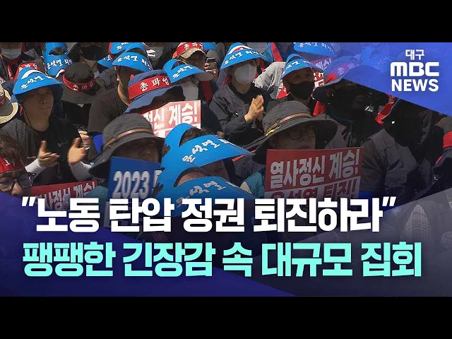 ◀앵커▶현 정부 들어 노동계와의 갈등이 갈수록 커지고 있습니다. 정부가 불법 집회에는 캡사이신까지 다시 사용하겠다는 강경 대응 방침을 밝히자, 노동계가 대규모 집회를 열었습니다.노조를 적대시하고 탄압한다며 정권 퇴진 요구까지 나왔습니다.변예주 기자가 보도합니다. ◀기자▶건설노조 조합원 400여 명이 대구시청 ...