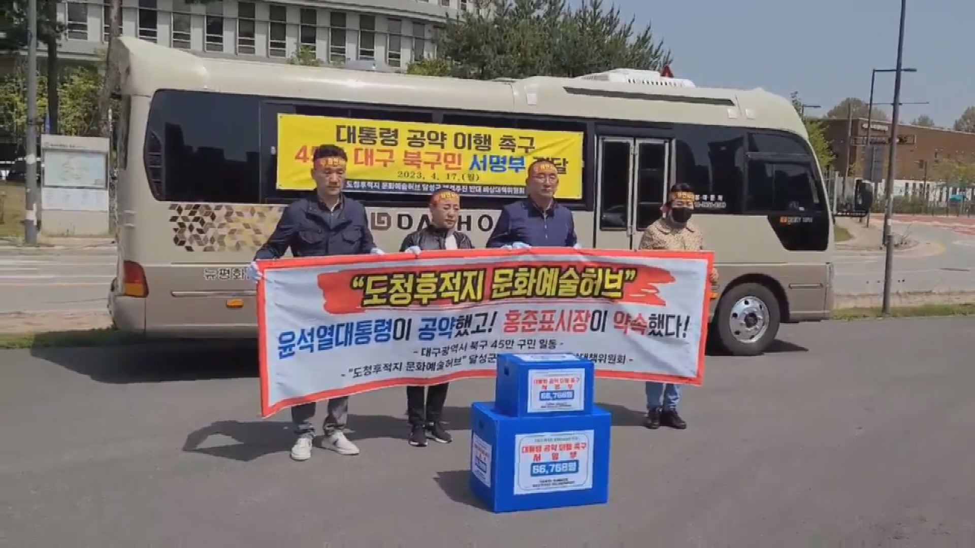 ◀앵커▶4월 5일, 대구시는 문화예술 허브를 기존 북구 옛 경북청사 터에서 달성군 대구교도소 이전 터에 짓겠다고 발표했습니다.이에 북구 주민들이 시위를 벌이기도 했는데요. 17일에는 북구 주민들의 성명서를 대구시와 문체부에 전달했습니다.변예주 기자와 자세한 내용 알아봅니다. 변 기자, 북구 주민들이 대구시청 산...