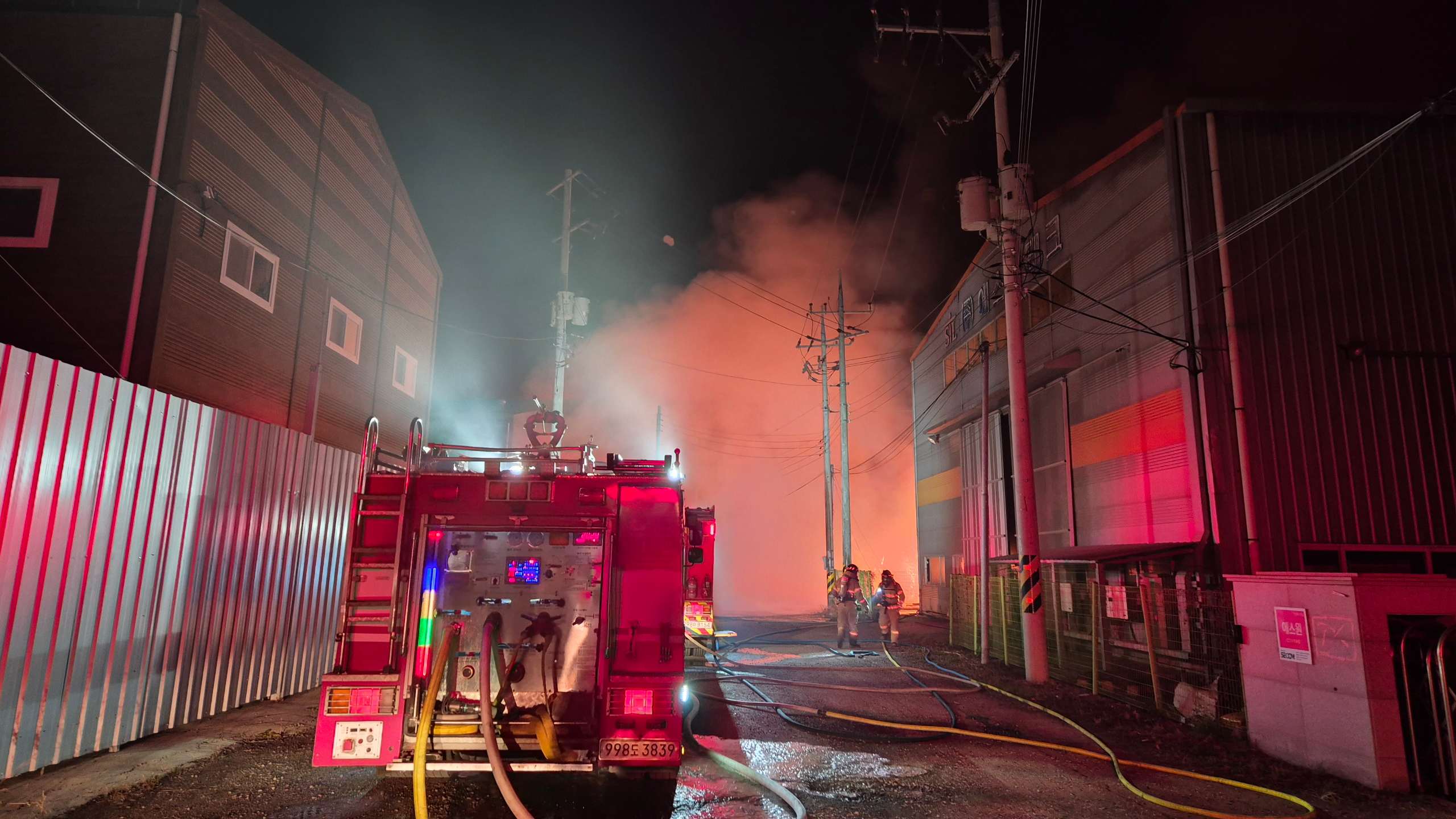 경북 영천 폐산 재처리 공장 화재···2시간 반 만에 초진