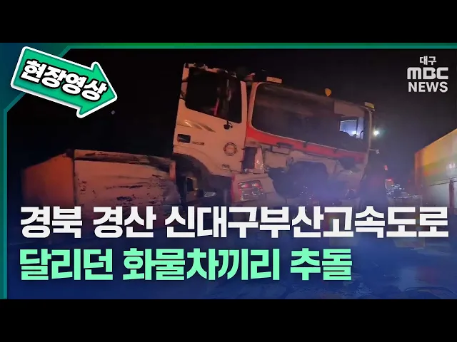 6월 26일 밤 10시쯤 경북 경산시 남천면 신대구부산고속도로 부산 방향 남천 졸음 쉼터 인근을 달리던 25톤 화물차가 앞서가던 8톤 화물차를 들이받았습니다.이 사고로 25톤 화물차 운전자인 60대 남성과 8톤 화물차 운전자 50대 남성이 병원으로 옮겨졌습니다.사고 충격으로 차량 두 대에 불이 나 모두 탔고, 1시간 10여 ...