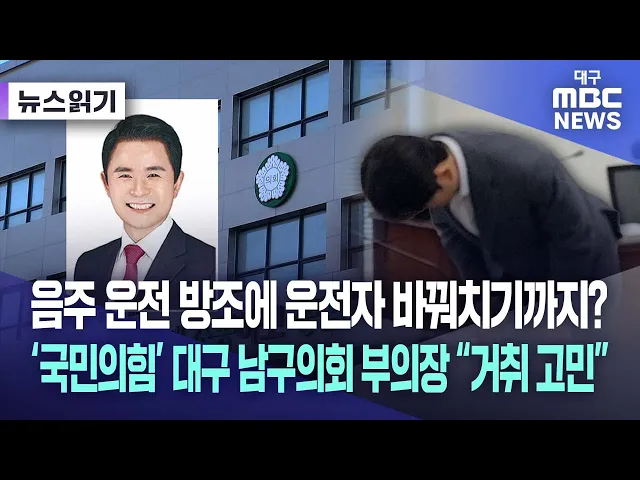 정재목 국민의힘 대구 남구의회 부의장의 음주 운전 방조 의혹에 대해 더불어민주당 소속 남구의원들이 정 부의장의 자진 사퇴를 촉구했습니다.강민욱, 이정현 의원은 6월 9일 오전 9시 남구의회 본회의장에서 기자회견을 열고 "정재목 부의장의 음주 운전 방조 의혹은 공직자의 윤리적 책임을 저버린 행위"라고 비판했습니...