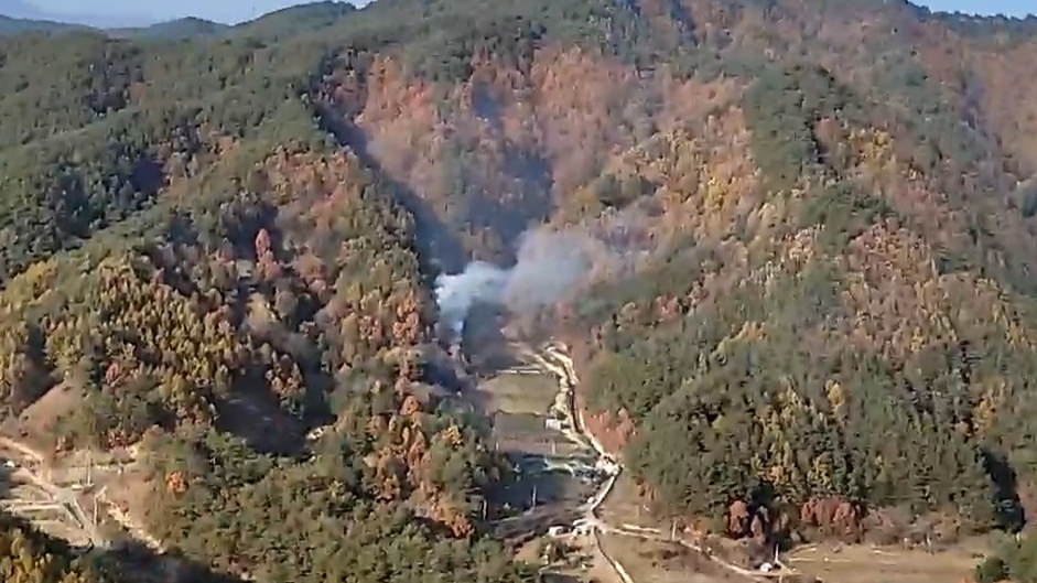 사진 제공 산림청11월 9일 오후 2시 10분쯤 경북 봉화군 법전면의 한 야산에서 불이 났습니다.산림 당국은 헬기 7대, 차량 33대, 인력 127명을 투입해 1시간 10분 만에 불을 껐습니다.이 불로 임야 0.2ha가 타 소방서 추산 3천8백만 원의 재산 피해가 났습니다.소방 당국은 CCTV용 태양광 패널 축전지에서 불이 시작된 것으...