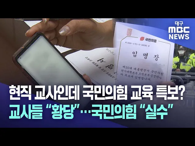 ◀앵커▶지난 20대 대선 당시 윤석열 후보 명의의 임명장이 공무원과 5·18 단체 회원들에게 발송돼 논란이 일었었는데요.이같은 일이 이번 대선에서 또 벌어졌습니다.5월 21일 오전 대구와 경북 일부 교사들이 국민의힘 교육특보 임명장을 받았는데요.선관위는 선거법 위반 여부를 들여다 보고 있습니다. 국민의힘은 무단으로...