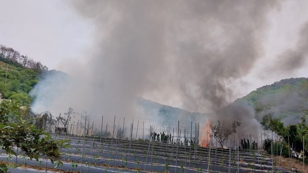 사진 제공 경북소방본부5월 14일 오후 3시쯤 경북 봉화군 명호면의 한 과수원에서 있던 제초기에서 불이 나 10여 분 만에 꺼졌습니다.이 불로 제초기 한 대와 사과나무 5그루가 타면서 소방서 추산 1천5백만 원의 재산 피해가 났습니다.소방 당국은 제초기 엔진이 과열돼 불이 난 것으로 보고 정확한 화재 원인을 조사하고 ...