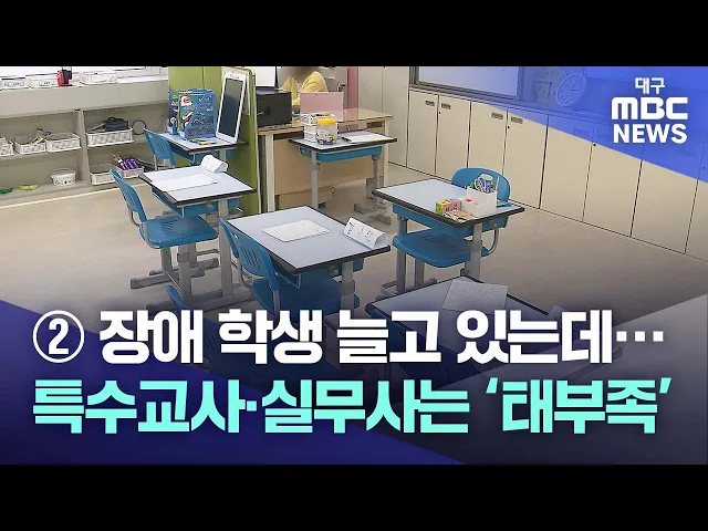 ◀앵커▶장애 학생은 늘지만, 특수학교와 학급이 부족해 제때 학교에 입학하지 못한 학부모들의 이야기와 대구 특수교육의 실태를 전해드렸습니다.교육 현장에 있는 특수교사와 실무원은 어떻게 느끼고 있을까요?입을 모아 현장 인력이 부족하다고 말합니다. 변예주 기자가 속 사정을 취재했습니다.◀기자▶장애 학생을 가르치...