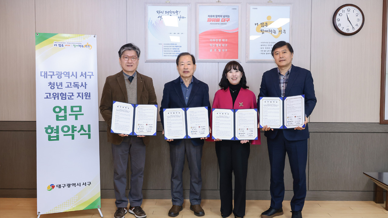 사진 제공 대구 서구대구 서구가 보건복지부 공모에 선정돼 청년들이 사회적 고립에서 벗어나 자립할 수 있도록 돕는 청년 고독사 예방 사업을 시작했습니다. 서구는 서구종합사회복지관, 서구제일종합사회복지관, 대구서구가족센터, 서구정신건강복지센터와 청년 고독사 고위험군 지원을 위한 업무협약을 맺고 지역 내 청...