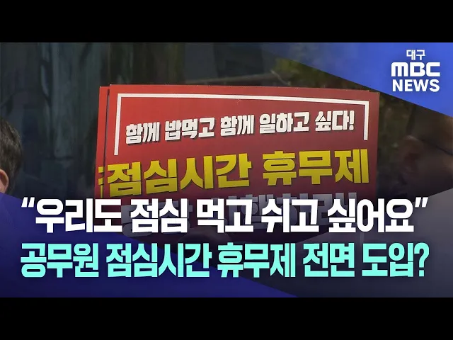 ◀앵커▶정오부터 1시간 동안 민원실을 닫는 점심시간 휴무제가 대구 곳곳에서 시범 운영되고 있습니다.공무원들의 휴식권을 보장하자는 취지인데요. 홍준표 대구시장의 반대로 한차례 무산된 적 있는데, 이번에는 시행될 수 있을까요?권윤수 기자가 보도합니다.◀기자▶오전 내내 행정복지센터를 찾는 이들의 발걸음이 이어집...