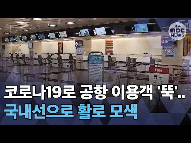 ◀ANC▶코로나19로 해외여행이 사실상 실종되면서 대구 공항 이용객이 지난해보다 70% 가까이 급감했습니다.공항 공사는 올해 100억 원 가량 적자가 생길 것으로 우려하고 있는데,궁여지책으로 국내선 개설에 사활을 걸고 있습니다.윤태호 기자가 취재했습니다. ◀END▶ ◀VCR▶대구 공항 1층 도착장.지난해까지만 해도...
