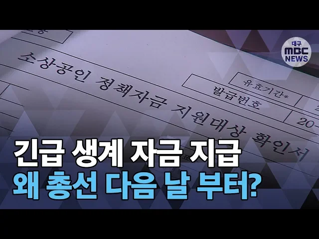 ◀ANC▶코로나19 긴급 생계 자금, 한시가 급하다고 합니다만 대구시는 총선이 끝나고 나서 주겠다고 해 논란이 커지고 있습니다. 여] 권영진 대구시장은 선거 업무에 영향을 준다며이렇게 하겠다고 하는데, 과연 맞는 말인지짚어봤습니다. 윤태호 기자가 취재했습니다. ◀END▶ ◀VCR▶권영진 대구시장은 긴급 생계 자...