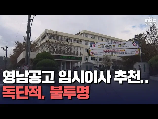 ◀ANC▶대구 영남공고 사태가 좀처럼 끝나지 않고 있습니다. 학교 비리로 이사 전원이 물러났는데 새로운 이사 추천을 두고 다시 몸살을 앓고 있습니다. 여]대구시 교육청이 임시 이사를 추천하면서독단적이고 투명하지 않게 일처리를 하고있다는 말을 듣고 있습니다. 윤태호 기자가 취재했습니다. ◀END▶ ◀VCR▶대구...