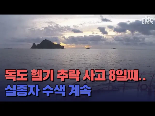 ◀ANC▶ 독도에서 구조헬기가 추락한지 오늘로 일주일입니다. 아직 찾지 못한 실종자가 4명인데, 오늘은 기상 악화로 수중 수색도 중단했습니다. 여] 경찰은 독도에 설치된 CCTV 영상 가운데 사고헬기가 이착륙하는 장면을 실종자 가족들에게 공개하기로 했습니다. 가족들이 있는 대구 강서소방서에 취재기자가 나가 있습...