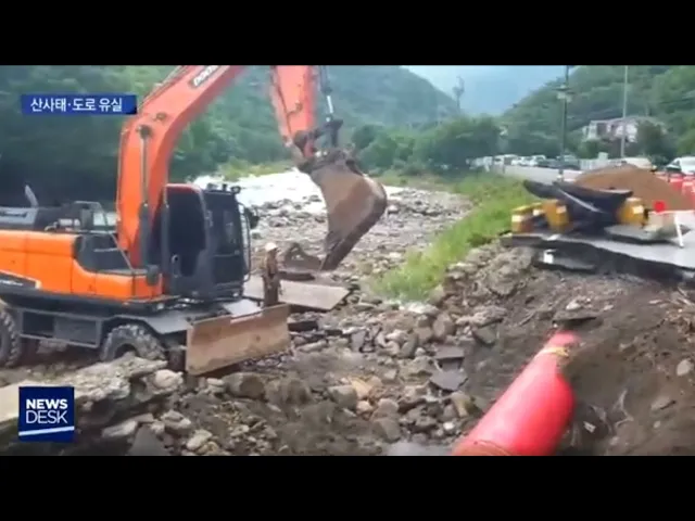 ◀ANC▶ 태풍 '다나스'의 영향으로 경북 일부 지역에는 수백mm의 폭우가 쏟아졌습니다. 이 때문에 도로가 유실되고, 산사태가 생겨 도로가 통제되기도 했습니다. 윤태호 기자가 취재했습니다. ◀END▶ ◀VCR▶ 청도 운문면과 울산 울주군을 연결하는 지방도. 많은 비로 하천이 범람하면서 도로 1개 차선이 유실됐습니다....