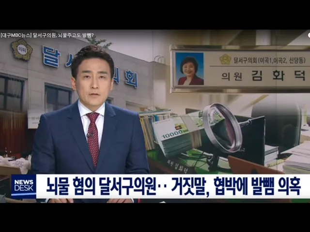 ◀ANC▶ 대구 달서구 김화덕 의원이 의장 선거를 앞두고 동료의원에게 돈을 준 혐의로 재판을 받고 있습니다. 그런데, 해당 의원은 동료의원이 먼저 돈을 요구했다는 등 검찰 수사를 뒤집는 주장을 하고 있어 발뺌하려 한다는 비난을 받고 있습니다. 윤태호 기자가 취재했습니다. ◀END▶ ◀VCR▶ 달서구의회 김화덕 의...