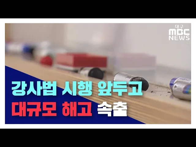◀ANC▶ 대학 시간 강사 권익을 보호하기 위해 만든 강사법 때문에 강사들이 오히려 불안에 떨고 있습니다. 오는 8월 강사법 시행을 앞두고 일부 대학은 강사 절반을 해고했는데, 강사법 파행 실태를 윤태호 기자가 취재했습니다. ◀END▶ ◀VCR▶ 지난해까지 대구대학교의 시간 강사는 420명입니다. 220명이 해고됐고, ...