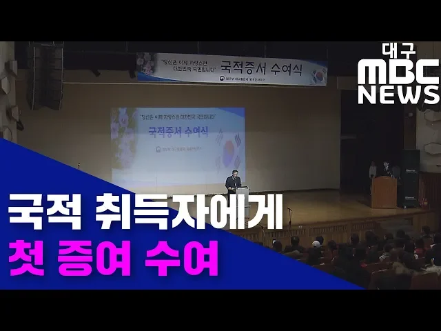 ◀ANC▶ 우리나라에 거주하는 외국인 가운데 한 해 만 명 정도가 우리나라 국적을 취득합니다. 우편으로 허가통지서만 보냈던 정부가 자긍심을 갖게 하기에 너무 무성의하다는 지적을 받자 올해 처음 국적증서 수여식을 열었습니다. 윤태호 기자가 보도합니다. ◀END▶ ◀VCR▶ 중국 지린성에 살다가 2008년 경북 구미에...