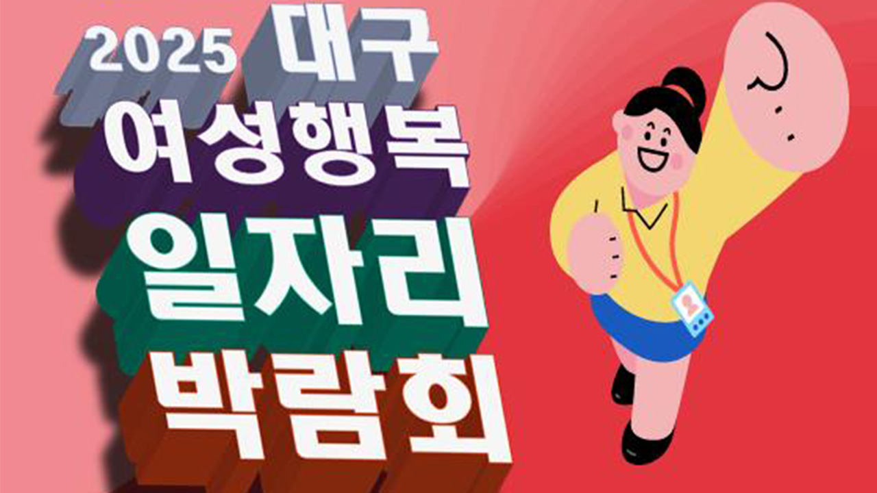 여성들의 취업과 창업을 지원하고, 경력 단절 여성의 사회 복귀를 돕기 위한 '2025 대구 여성 행복 일자리 박람회'가 9월 26일 엑스코에서 개막합니다.이틀간 열리는 여성 행복 일자리 박람회는 새일 홍보관, 취업지원관, 채용지원관, 경력단절예방관 등 6개 영역으로 구성돼 직업 교육 훈련과 채용 정보를 소개합니다.특히...