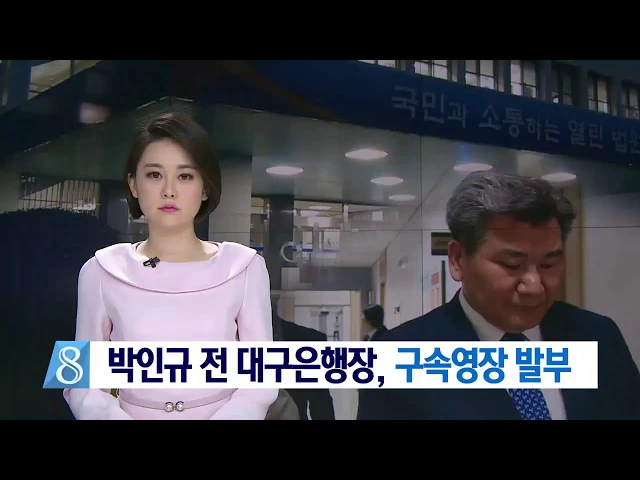 ◀ANC▶ 대구은행 채용비리와 비자금 조성 혐의를 받고 있는 박인규 전 대구은행장이 구속됐습니다. 오늘 영장실질심사가 열린 대구지방법원을 LTE로 연결해 자세한 소식 알아봅니다. 윤태호 기자! 결국 영장이 발부됐군요? ◀END▶ ◀VCR▶ 네, 박인규 전 대구은행장에 대한 구속영장이 조금전 ( )시에 발부됐습니다. ...