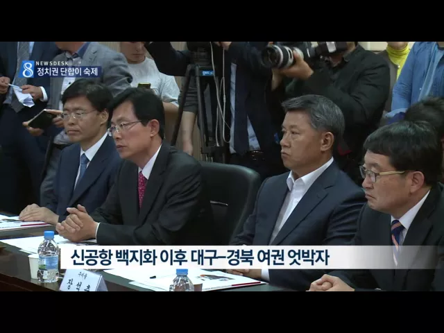 ◀ANC▶ 영남권 신공항 추진 과정에서도 그랬지만, 무산 이후에도 지역 정치권의 대처는 실망스러운 수준에 머물고 있습니다. 여] 여권조차도 대구와 경북이 엇박자를 내고 있는데, 여권의 단합은 물론 야당과의 초당적 대응이 필요하다는 지적이 나오고 있습니다. 윤영균 기자가 보도합니다. ◀END▶ ◀VCR▶ 영남권 신...