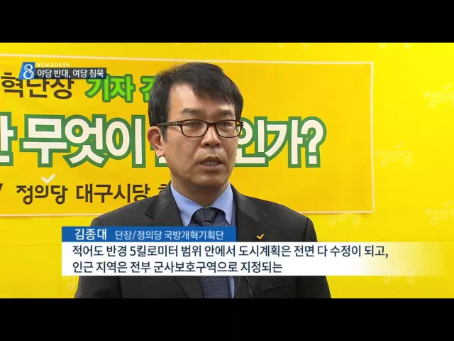 ◀ANC▶ 미국의 고고도 미사일 방어체계, 사드 배치 후보지로 대구와 칠곡 왜관이 거론되고 있다는 소식이 전해지면서 우리지역이 크게 술렁이고 있습니다 국방부는 사실이 아니라고 말하지만, 혹시나 하는 불안감은 갈수록 커지고 있습니다. 여] 이런 상황에서 지역의 야당들은 사드 지역 배치에 반대 입장을 분명히 밝히...