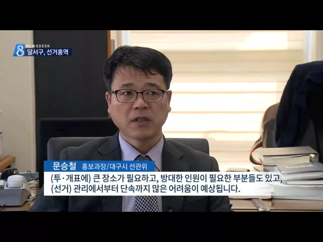 대구달서구청장의 총선 출마로 구청장 자리가 비자 대구시의원 2명이 구청장 보궐선거 출마선언을 했는데, 자! 시의원이 사퇴한다면 시의원 보궐선거는 물론이고, 시의원 출마를 위해 사퇴하는 구의원 보궐선거까지 치러야해 내년에 달서구가 선거 홍역을 치를 전망이라지 뭡니까요. 대구시 선관위 문승철 홍보과장, "국회...