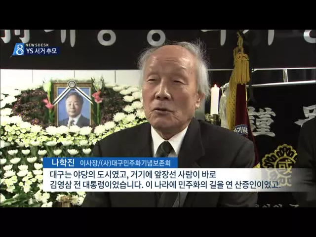 새누리당 경북도당은 성명을 통해 민주화 운동의 영웅이자 화신이었던 김영삼 전 대통령의 서거를 애도한다고 밝히고, 경북도내 전역에 추모현수막을 걸고, 영결식이 열리는 모레까지 추모분위기를 이어나가기로 했습니다. 새정치민주연합 경북도당도 논평을 통해 하나회 척결과 금융실명제 도입, 광주 민중항쟁의 민주화 ...