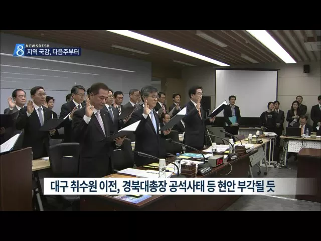 ◀ANC▶ 19대 국회 마지막 국정감사가 내일부터 시작됩니다. 대구,경북지역은 다음주부터 열리는데, 총선을 앞두고 있는 만큼 강도높은 국감이 예고되고 있습니다. 박재형 기자가 보도합니다. ◀END▶ ◀VCR▶ 대구시 공무원들이 국정감사 준비에 여념이 없습니다. 국회 국정감사가 내일부터 시작되는 가운데 대구,경북...