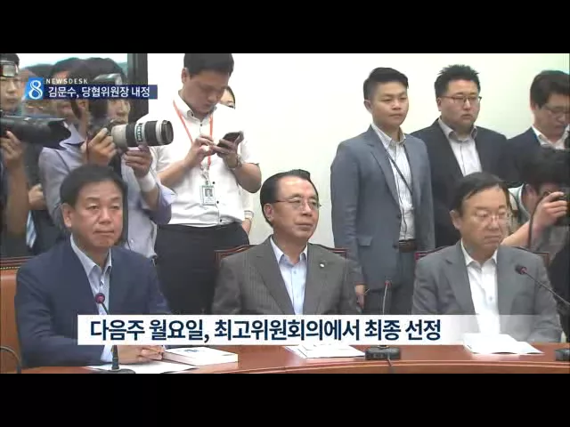 ◀ANC▶ 김문수 전 경기도지사가 새누리당 대구 수성갑 당협위원장에 내정됐습니다. 다음주 월요일 새누리당 최고위원회의에서 최종 결정이 날 예정인데, 새정치민주연합 김부겸 전 의원과의 맞대결이 성사될 것으로 보입니다. 한태연 기자가 보도합니다. ◀END▶ ◀VCR▶ 새누리당 조직강화특별위원회가 비공개로 회의...
