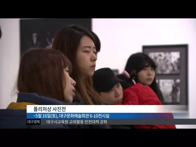 ◀ANC▶ 대구에서 열리고 있는 퓰리처상 수상작 전시회가 관객 몰이에 나서고 있습니다. 개막한 지 3주만에 만명이 넘는 관람객이 찾았는데, 실제 수상자가 전시장을 깜짝 방문해 사진전의 의미를 더했습니다. 윤태호 기자가 취재했습니다. ◀END▶ ◀VCR▶ 세계적인 사진작가 존 카플란이 지난 3일 대구를 방문했습니다...