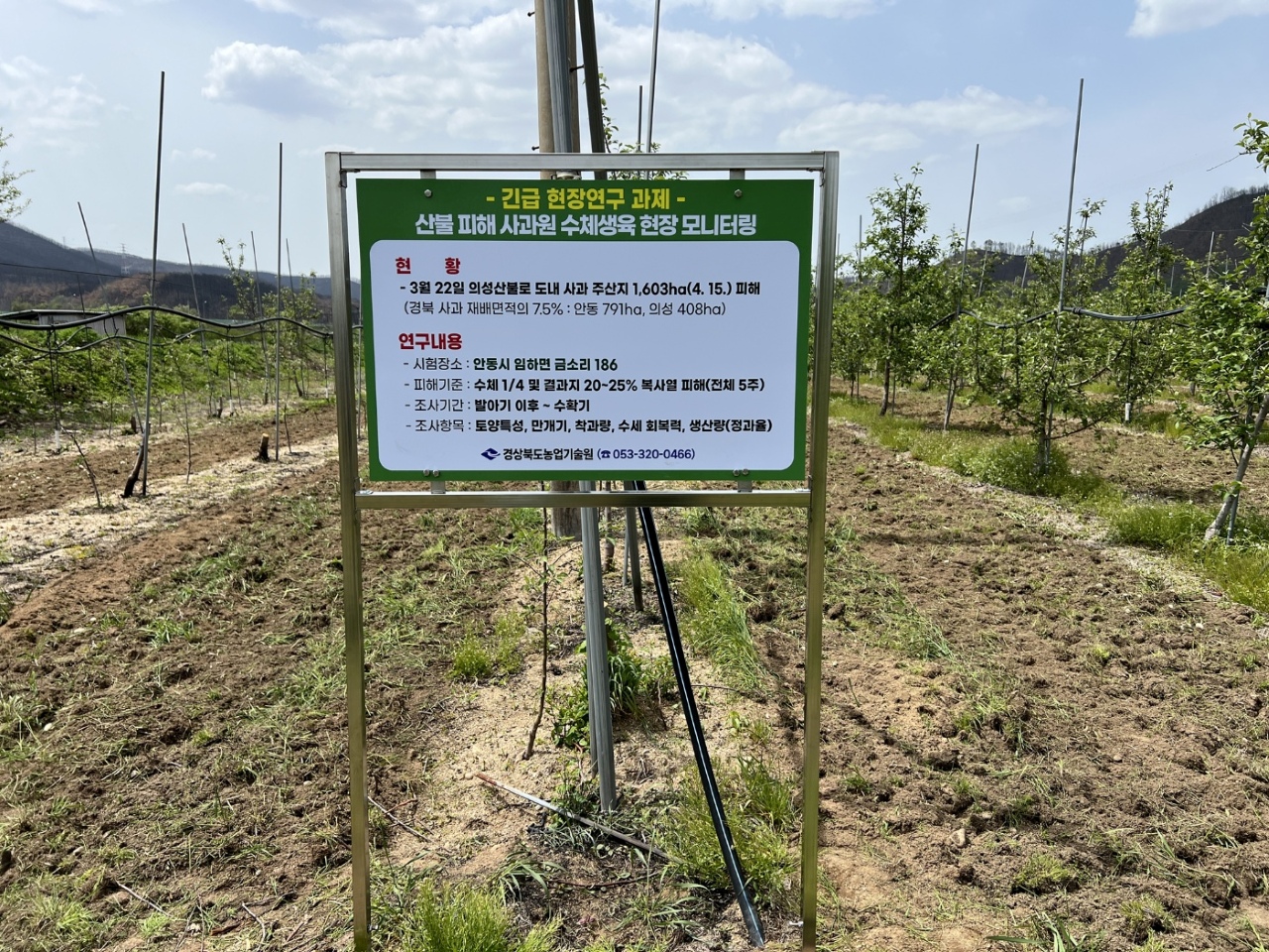 경상북도, '산불 피해' 사과나무 생존력·회복 가능성 조사