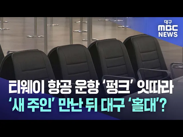 ◀앵커▶대구에 본사를 둔 티웨이 항공이 5월달 대구-방콕 노선 운항을 중단한다고 얼마 전 공지했습니다. 급박하게 운항을 중단한 것도 문제지만, 매진됐다고 공지하는 바람에 더 논란인데요. 티웨이는 6월과 7월 국제노선도 일부 운항을 중단하기로 했는데, 티웨이가 새 주인을 만난 이후 대구를 외면하는 것 아닌가 하는 ...