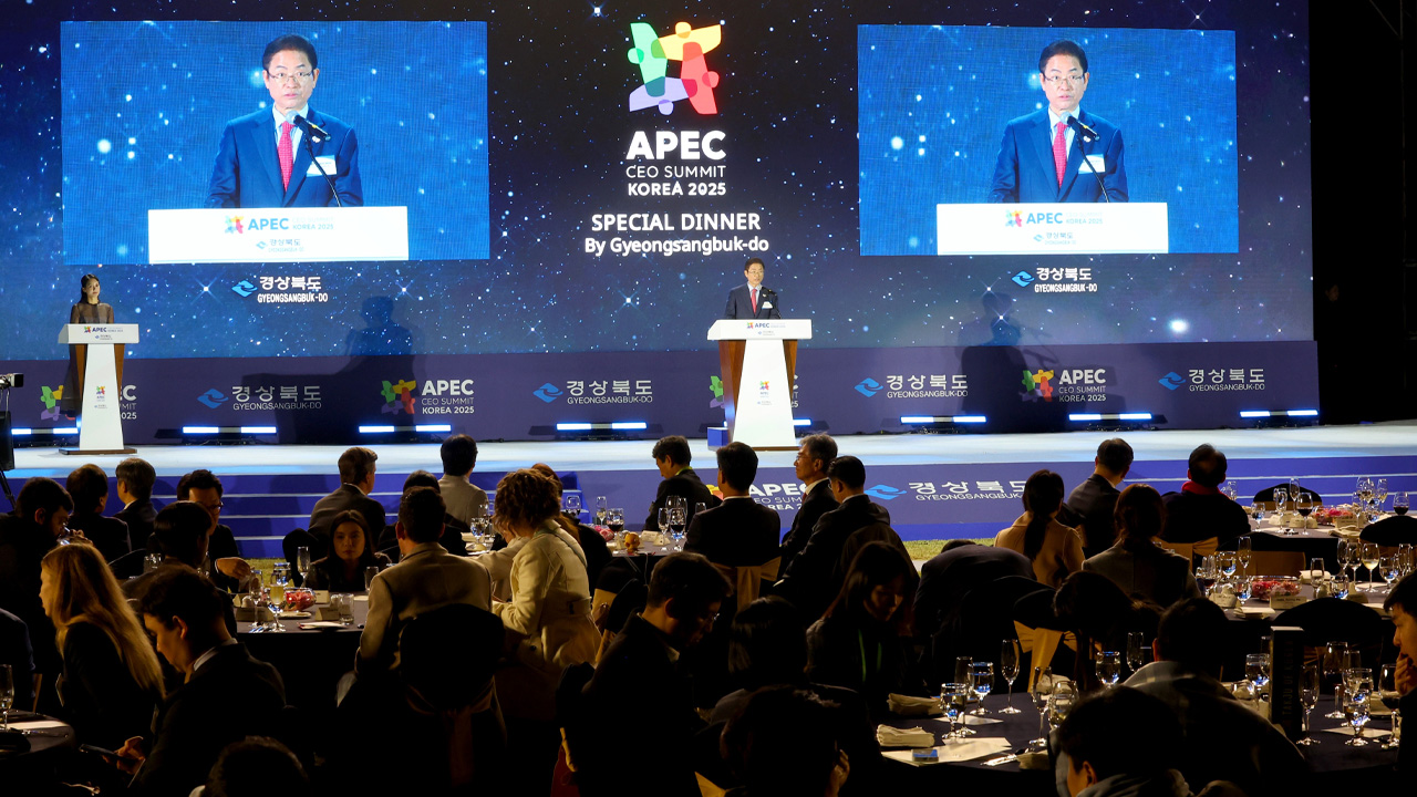 경상북도는 APEC 정상회의 기간 경주를 찾은 글로벌 기업들을 초청해 환영 행사를 열고, 투자와 협력을 요청했습니다.이철우 경상북도지사는 경주 황룡원에 열린 '글로벌 CEO 환영 만찬'에서 영어로 환영사를 말하면서 새로운 번영의 시대를 위한 동반 관계를 경상북도와 함께 만들어 가자고 제안했습니다.이날 만찬은 APEC...