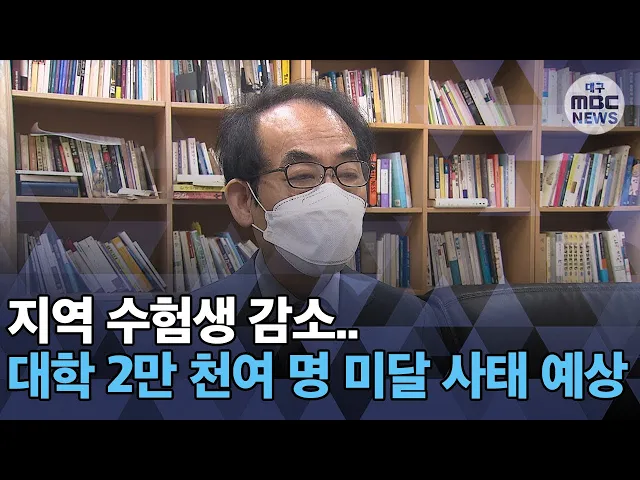 ◀ANC▶올해 수능 응시 원서를 집계한 결과, 지역 4년제 대학들이 정원을 채우지 못할 것이라는 전망이 나왔습니다. 우려했던 일이 현실이 되는 건데, 전문대까지 합치면 무려 2만 천여 명을 채우지 못하는 사상 초유의 일이 벌어질 것으로 보입니다.윤태호 기자가 취재했습니다. ◀END▶ ◀VCR▶올해 대구, 경북에서 ...
