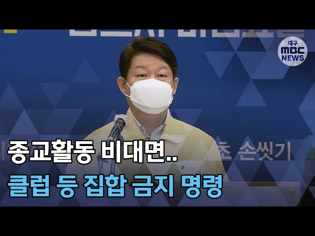 ◀ANC▶[남]대구시가 코로나 사태 이후 처음으로모든 종교시설에 집합 금지 명령을 내렸습니다.지난 2월 신천지 사태 때도 없던 일인데,교회발 집단감염이 지역사회로 더 번지는 것을막기 위해섭니다.[여]클럽과 헌팅포차 등은 사실상 폐쇄하기로 했고, 음식점이나 카페 등지에서 마스크를 착용하지 않으면 행정 조치하기...