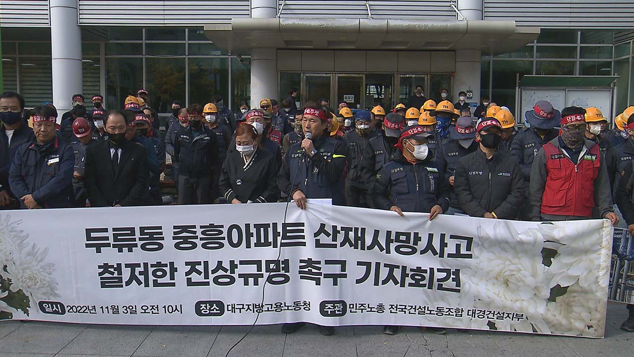 ◀앵커▶지난해 전국의 건설 현장에서 목숨을 잃은 노동자, 417명이었습니다.집을 지으러 갔다가 하루 한 명 이상 집으로 돌아오지 못하고 있는데, 대부분 안전조치 미흡 때문에 벌어진 사고입니다.사고를 막자며 중대재해처벌법을 도입했습니다만 지금까지 단 한 명의 처벌도 없습니다. 대구에서도 지난주 건설노동자 한 명...