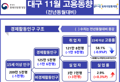 [심층] 11월 대구 취업자 1년 전보다 1만 9천 명 감소···고용률 0.9%P 하락