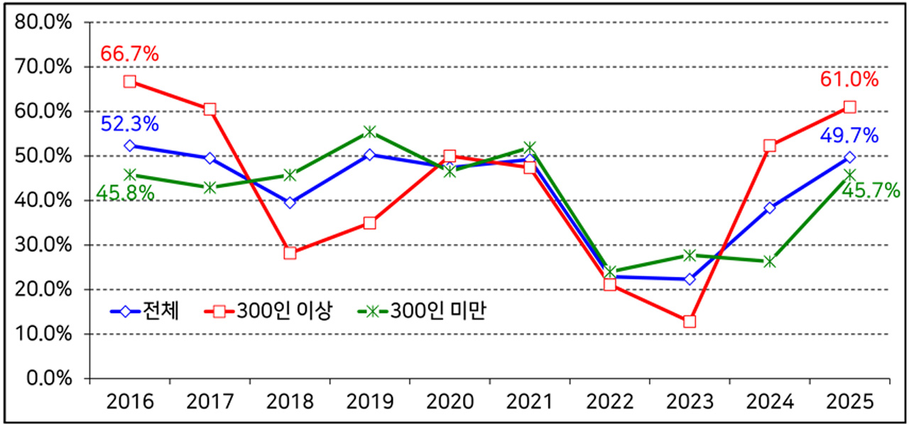 [심층] 기업 49.7% "2025년에 긴축 경영" 82% "트럼프 정책, 부정적 영향" 59.8% "경기 회복, 2026년 이후"