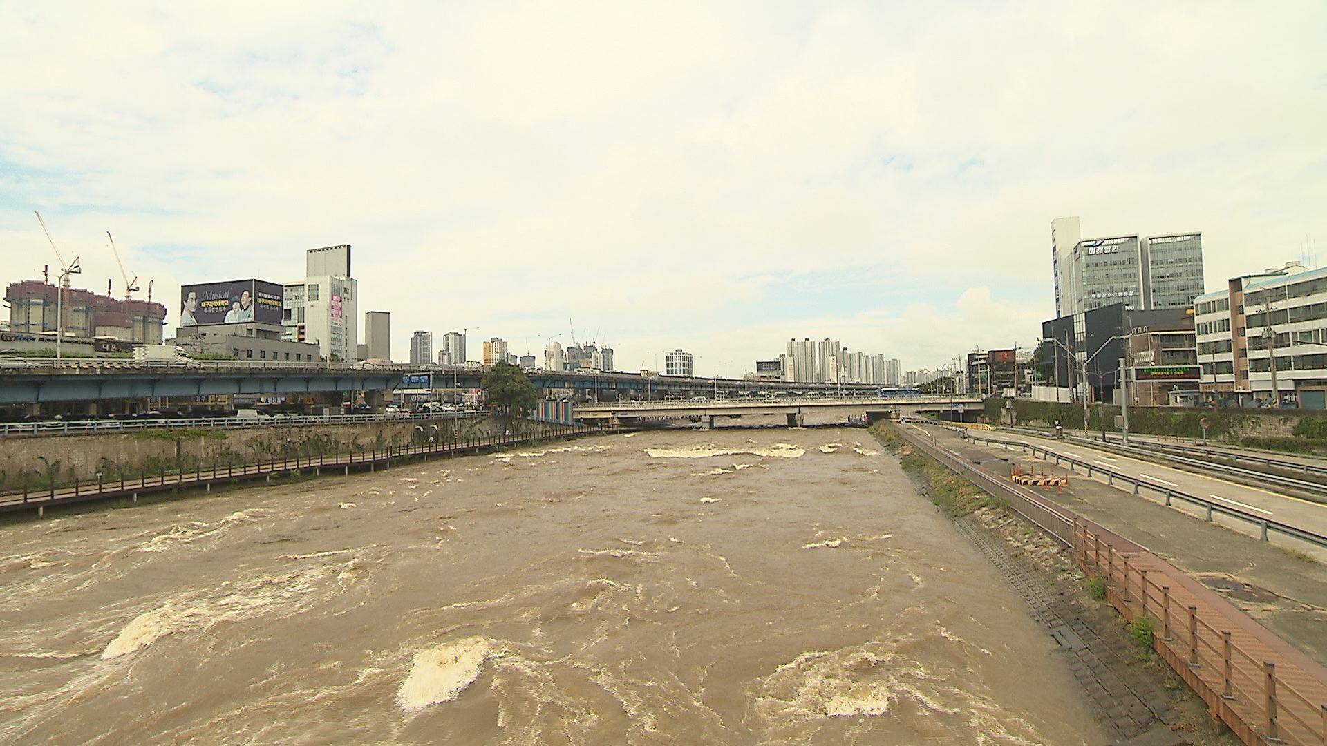 황토색으로 변한 대구 신천8월 31일 오전, 대구 도심을 지나는 젖줄로 불리는 신천. 신성교 인근에서 바라본 신천은 온통 황토색이었습니다.거센 물살이 소용돌이치고, 파도처럼 넘실거립니다. 자전거 도로까지 차오르는 물을 막기 위해 구청 관계자들이 연신 빗자루질을 해보지만 역부족.신천 바로 옆, 평소 바쁘게 움직이...